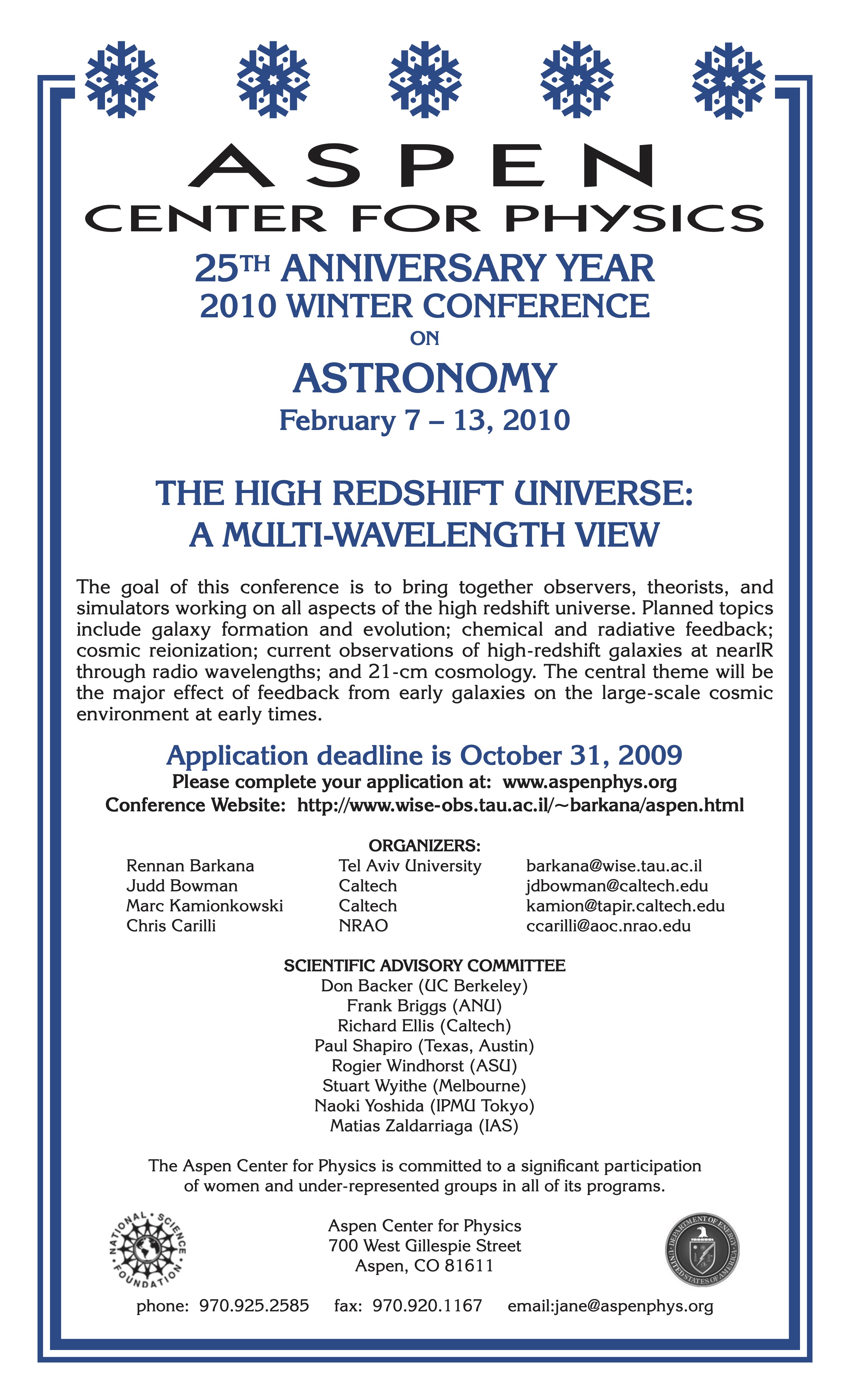 of the Cosmic Dark Ages, Aspen, U.S.A.